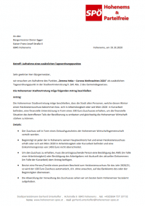 Die SPÖ wird in der kommenden Stadtvertretungssitzung am 3. November einen entsprechenden Antrag einbringen. Unter dem Titel „Zemma Heba – Corona Weihnachten 2020“ stellen die Sozialdemokraten ihren Vorschlag den anderen Fraktionen zur Diskussion. Zechner: „Wir sind der Meinung, dass Zusammenhalten und direkte Unterstützung in der Krise besonders wichtig sind. Gerade jetzt, vor Weihnachten, ist bei vielen das Geld sehr knapp. Wir wollen nicht darauf warten, bis das Land oder der Bund handeln. Die Möglichkeiten, die wir als Stadt haben, sollten wir nutzen. Darum ergreifen wir jetzt die Initiative.“
